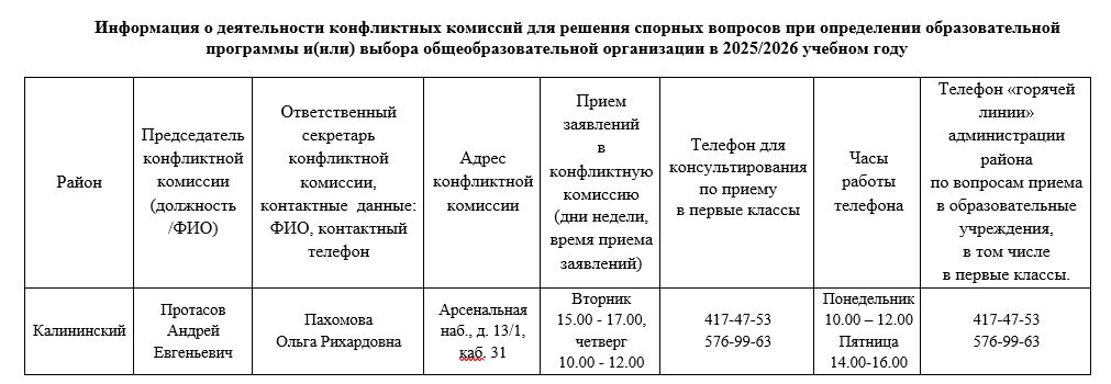 Заявление в конфликтную комиссию администрации Калининского района Санкт-Петербурга